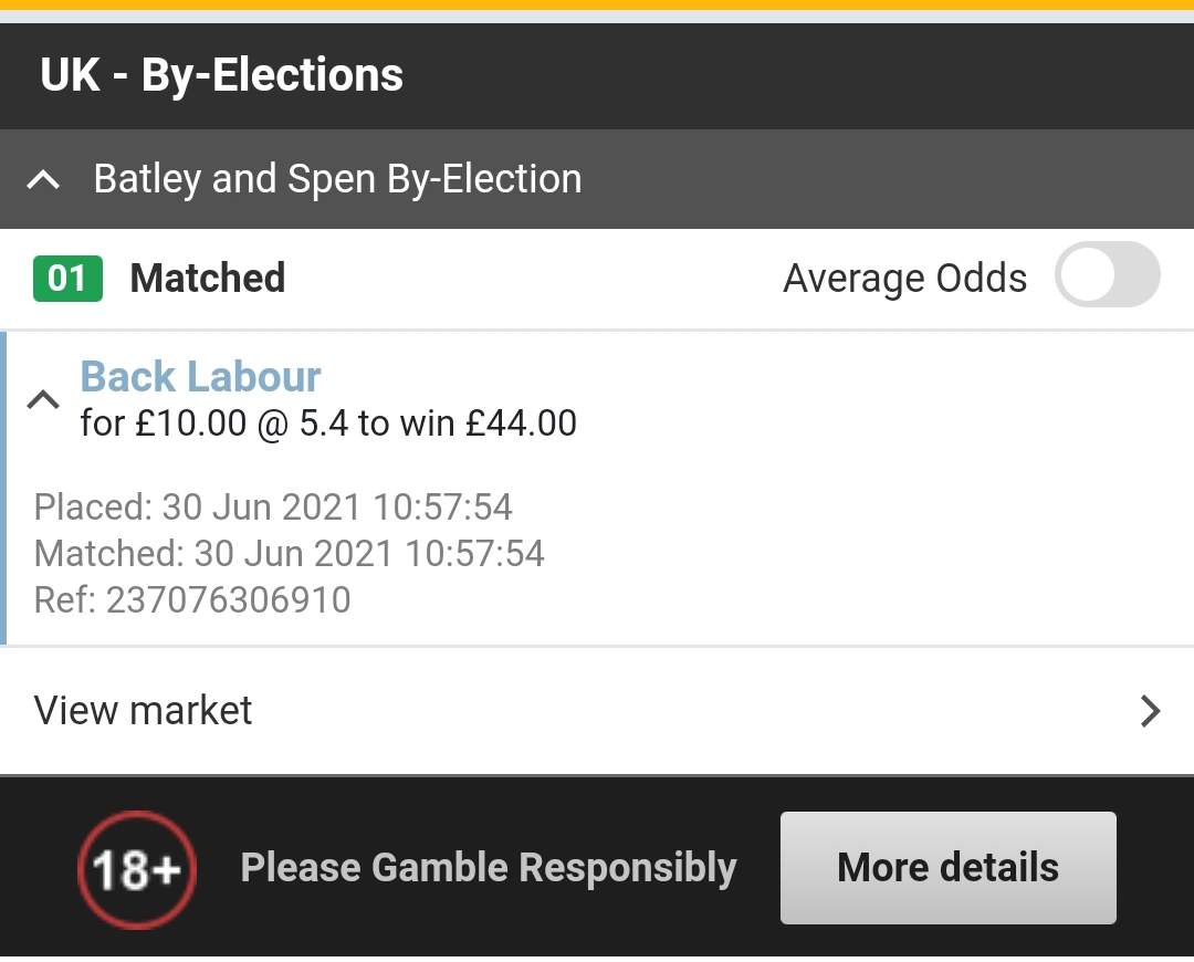Personally, this by-election represented something of a first in that I called it right: with George Galloway in the mix and the revelations about the ridiculous Matt Hancock over the weekend, the narrative of the Tories romping to an easy victory up north never felt very convincing to me. Anyway, I stuck a tenner on Labour to win and got an Indian take away sized profit! Go me, perhaps sticking with political betting is the main lesson I should learn!